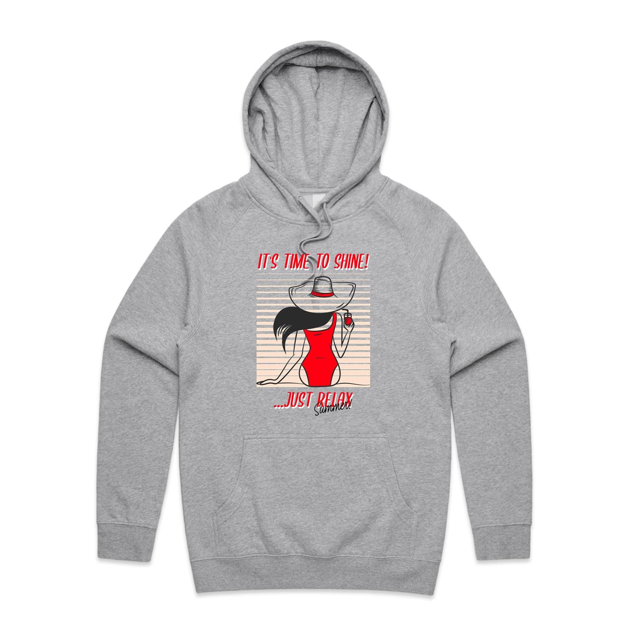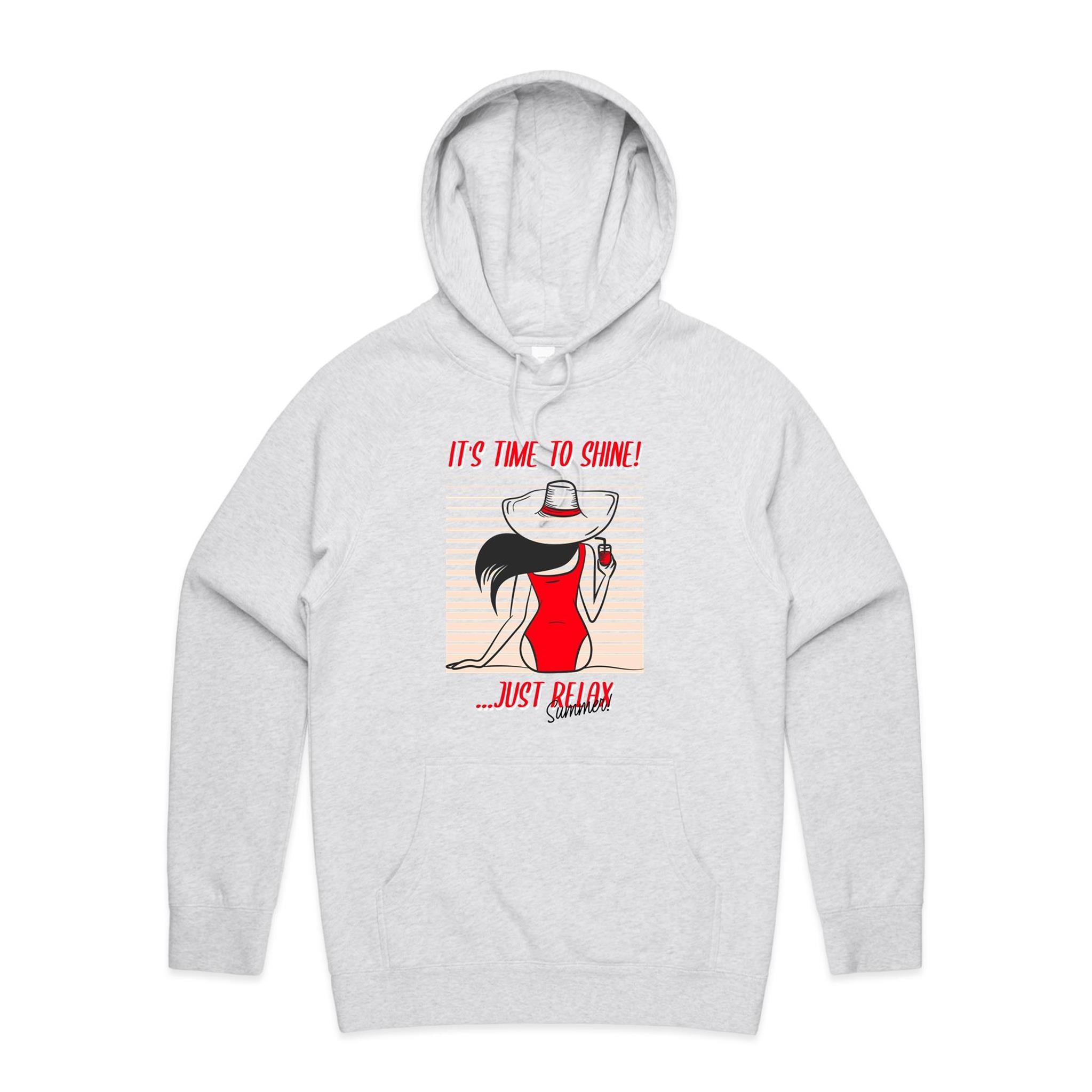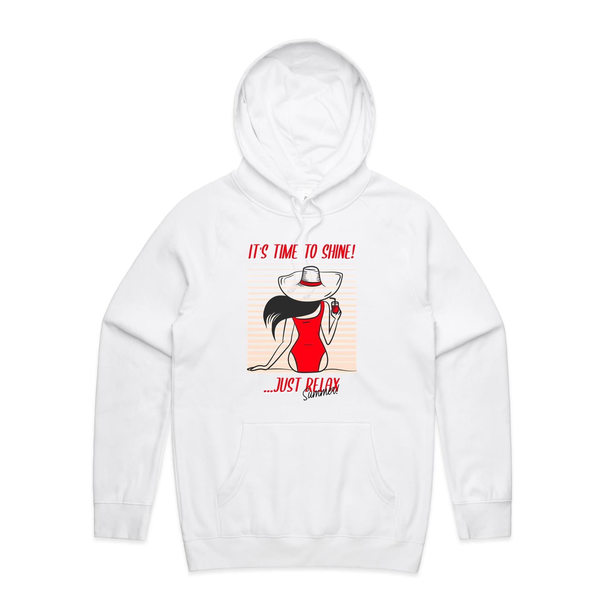 Get ready for summer with our 'Time to Shine' hoodie! Crafted for unbeatable comfort and effortless style, this hoodie is perfect for laid-back days or cool summer nights out. With its relaxed fit and standout design, it's the go-to piece for your casual wardrobe.