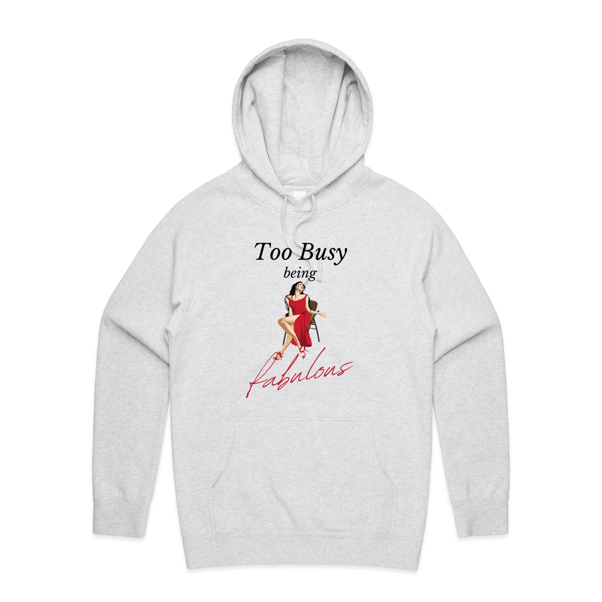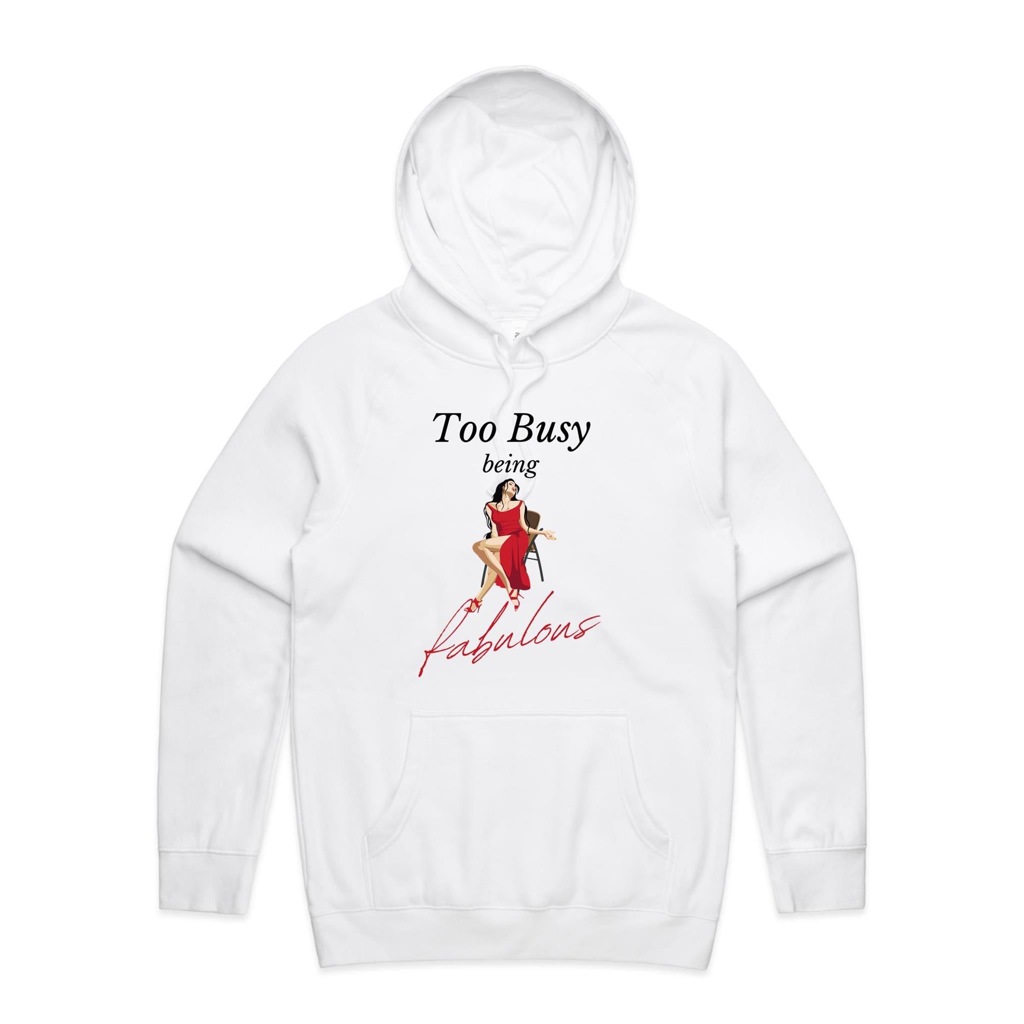 Stay comfy while being fab with our 'Too Busy Being Fabulous' hoodie. Keep warm and stylish with this relaxed fit hoodie that perfectly captures your busy and fabulous lifestyle.